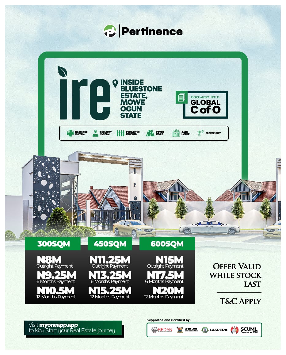 Ire, at Blue Stone Estate, Mowe – Ogun State